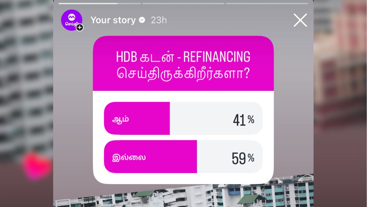 Instagram-இல் 'செய்தி' நடத்திய கருத்துக்கணிப்பில் சுமார் 60 விழுக்காட்டினர் கழகத்திடம் பெற்ற கடனை வங்கிக் கடனாக மாற்றியதில்லை எனத் தெரிவித்தனர்.